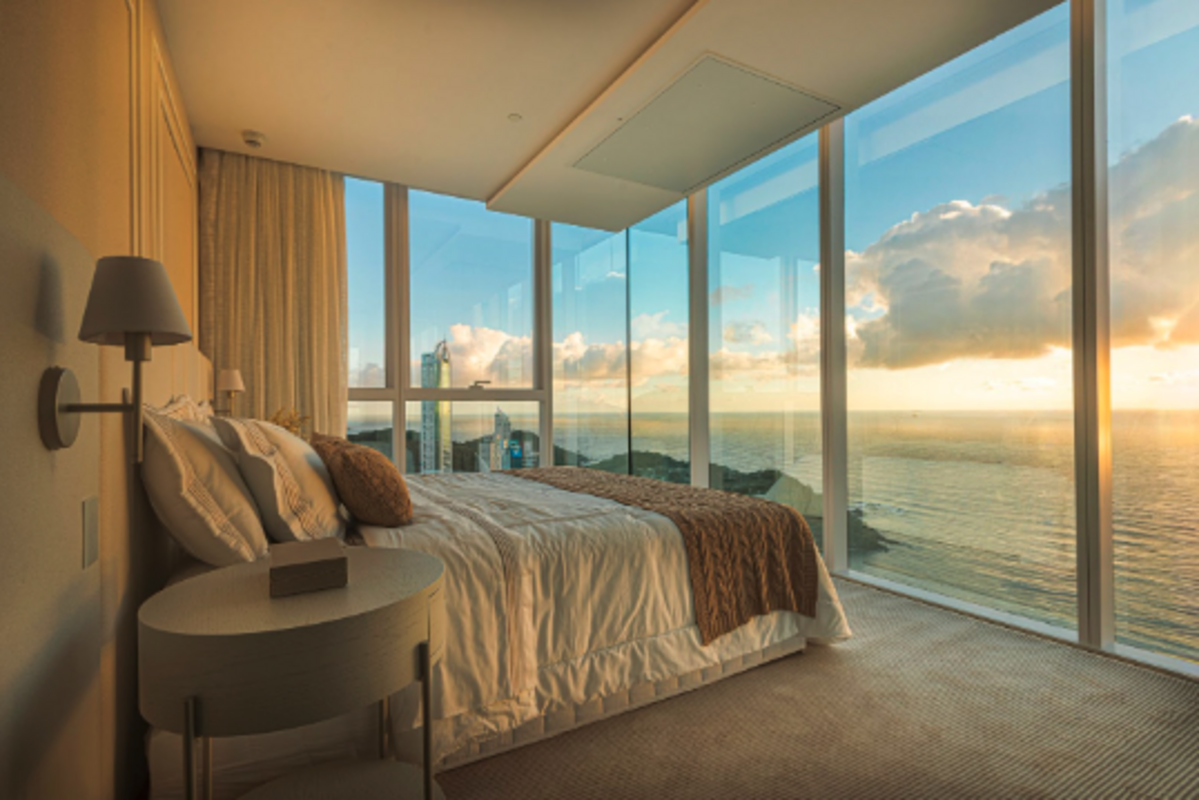 A tecnologia é um dos pilares do projeto. Totalmente automatizado, o apartamento permite o controle remoto de iluminação, climatização e sistemas eletrônicos, atendendo ao perfil conectado da família. Entre os destaques técnicos estão soluções que ampliam o conforto no uso cotidiano, como o flap da suíte master com abertura de até 200 graus, além de sistemas de segurança integrados, como sprinklers distribuídos pelos ambientes.