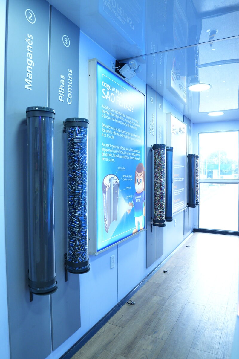 O caminhão-escola oferece atividades interativas que explicam o ciclo de vida das pilhas, do processo de fabricação até o descarte correto, reforçando práticas de economia circular e responsabilidade ambiental, trazendo conhecimento prático ao público familiar.