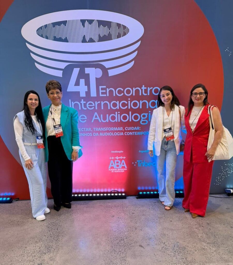 A equipe da Audibel Aparelhos Auditivos marca presença no 41.º Encontro Internacional de Audiologia, um dos mais importantes eventos da saúde auditiva. Com a liderança da Dra. Katia Silveira, ao lado de Luciana, Mayara e Lisandra, o time segue em constante busca por conhecimento, inovação e excelência no cuidado com a audição. Parabéns por representarem com tanto profissionalismo e dedicação!