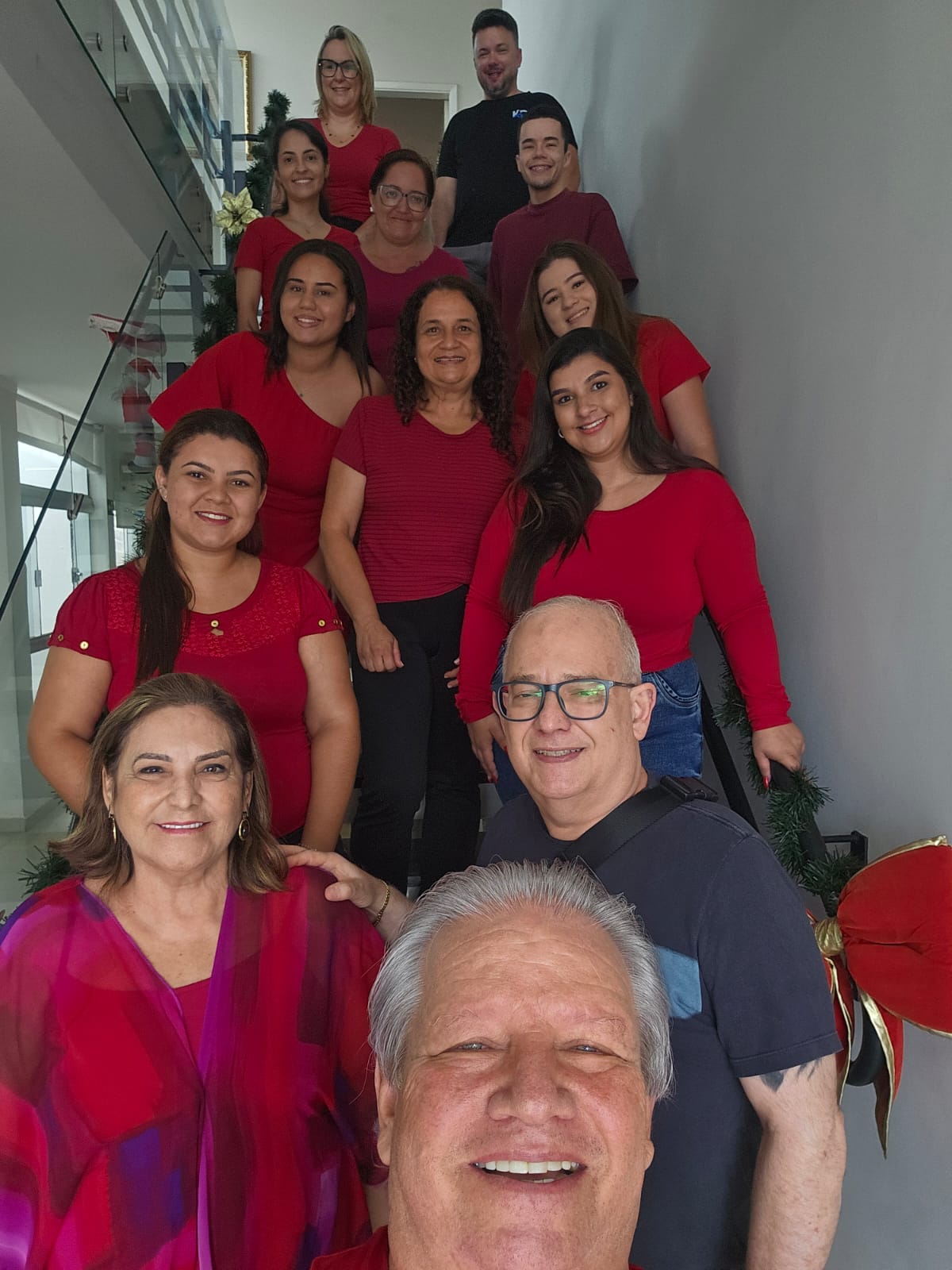 A MED CLIN Medicina do Trabalho é, acima de tudo, reflexo de uma equipe comprometida, dedicada e altamente profissional. Cada colaborador contribui diariamente com excelência, responsabilidade e espírito de união, formando um time que trabalha com propósito, cuidado e respeito à saúde e ao bem-estar de cada paciente e empresa atendida. Sob o comando inspirador do casal Noedí e Samuel Freitas, a MED CLIN construiu uma trajetória sólida, pautada na ética, na competência e no olhar humano. A liderança firme e ao mesmo tempo acolhedora do casal se traduz em um ambiente de trabalho harmonioso, onde o profissionalismo caminha lado a lado com o respeito, a valorização das pessoas e o incentivo ao crescimento contínuo. O sucesso da MED CLIN é resultado direto dessa combinação: uma liderança visionária e uma equipe alinhada, comprometida e apaixonada pelo que faz. Juntos, constroem diariamente uma empresa que se destaca pela qualidade dos serviços prestados, pela confiança conquistada e pelo exemplo de trabalho em equipe. A foto destaca a equipe, em clima natalino, composta por Caroline, Gabriel, Gabrielly, Pamela, Silvia, Ana Paula, Giseli, Danieli, Tainá, Danilo, Noedi, Samuel e Dr. José Geraldo.