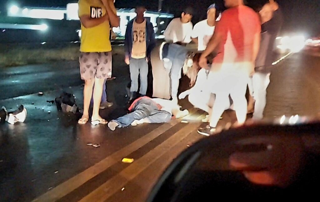 De acordo com informações de testemunhas, um carro e uma moto colidiram próximo ao quilômetro 2, o motorista do carro fugiu após o acidente.