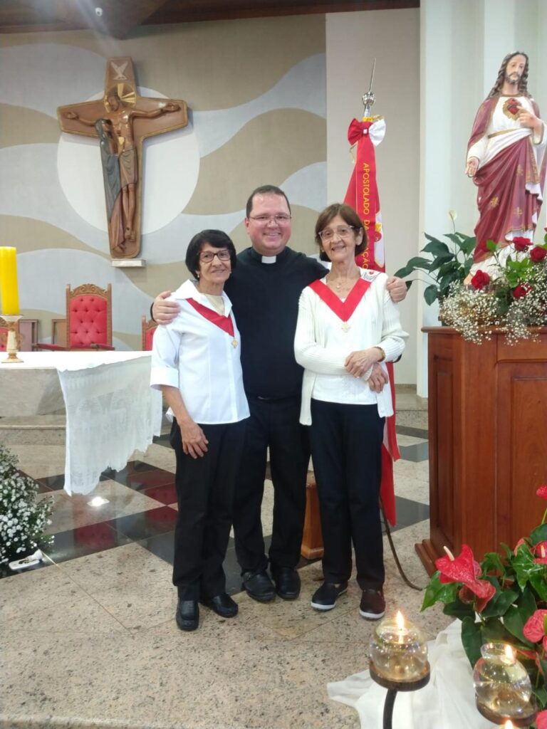 Início » Amiga muito querida, tenho por ela um carinho enorme. Maria Conceição Cintra aqui acontece neste click especial junto do Padre Wellington e da Zaira, durante encontro do Apostolado da oração na paróquia São Benedito.