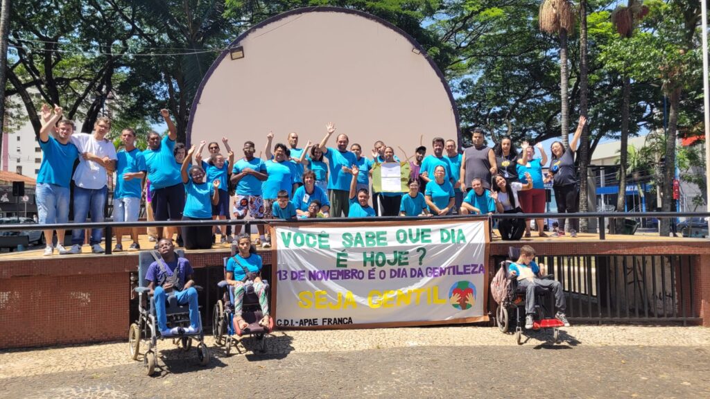 Nesta segunda-feira, 13 de novembro, a APAE (Associação de Pais e Amigos dos Excepcionais) de Franca, através do Centro Dia Intergeracional, realizou uma atividade na praça central da cidade para celebrar o Dia Mundial da Gentileza.