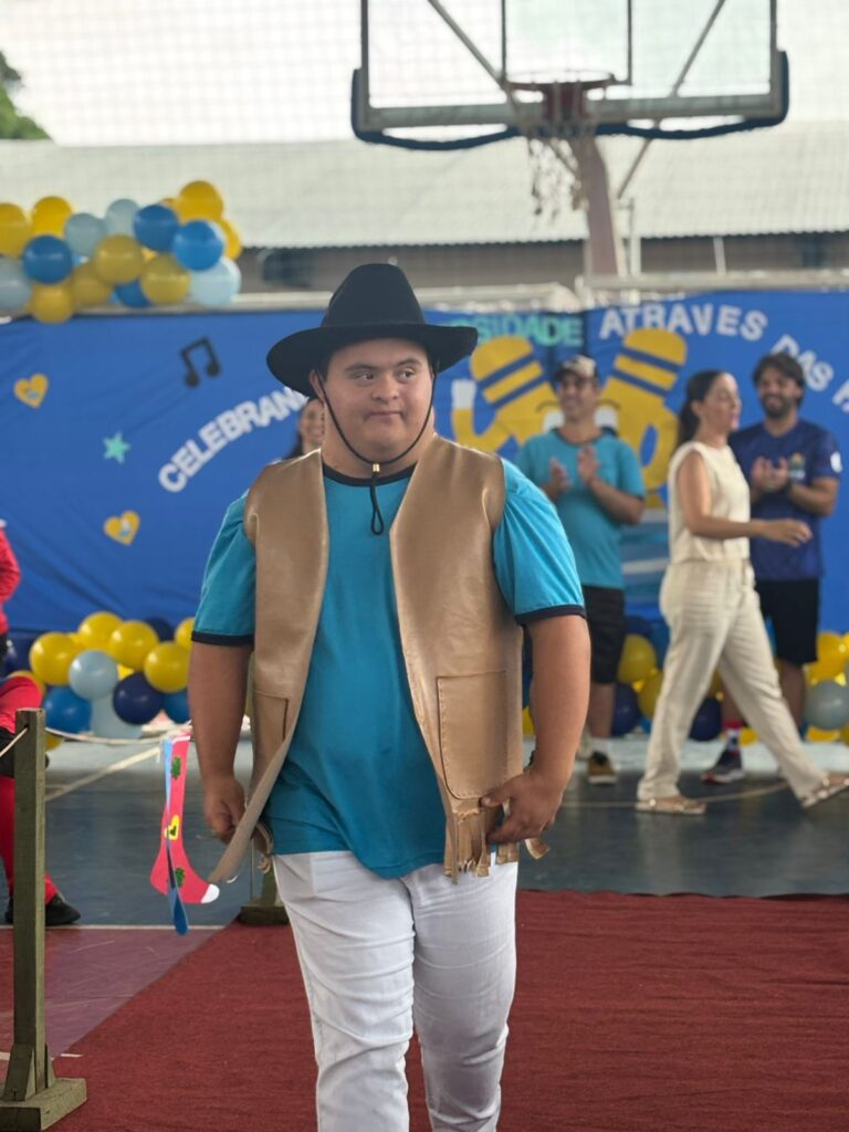 A ambientação também chamou atenção: a decoração foi composta por pares de meias coloridas, símbolo internacional da Síndrome de Down. As meias representam os cromossomos – cuja forma lembra o acessório – e fazem alusão à trissomia do cromossomo 21, característica da condição. Segundo a organização, o símbolo reforça a mensagem de diversidade, inclusão e respeito, sendo também associado ao chamado “cromossomo do amor”, em referência à empatia e afeto frequentemente destacados por quem convive com pessoas com a síndrome.
