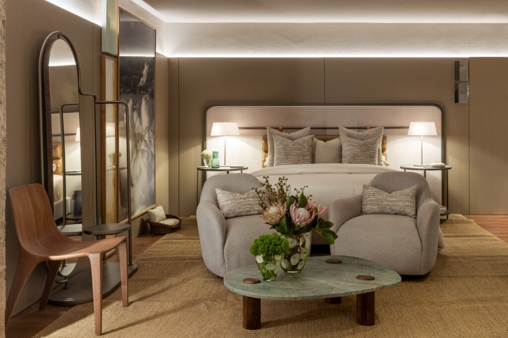 “Busquei inspiração em suítes de hotéis nos quais já me hospedei. Lugares com personalidade, em que me fazia não sentir vontade de sair do quarto. Trouxe para a CASACOR uma composição com soluções simples, mas sem deixar de lado o conforto e a sofisticação”, revela Nalini.
