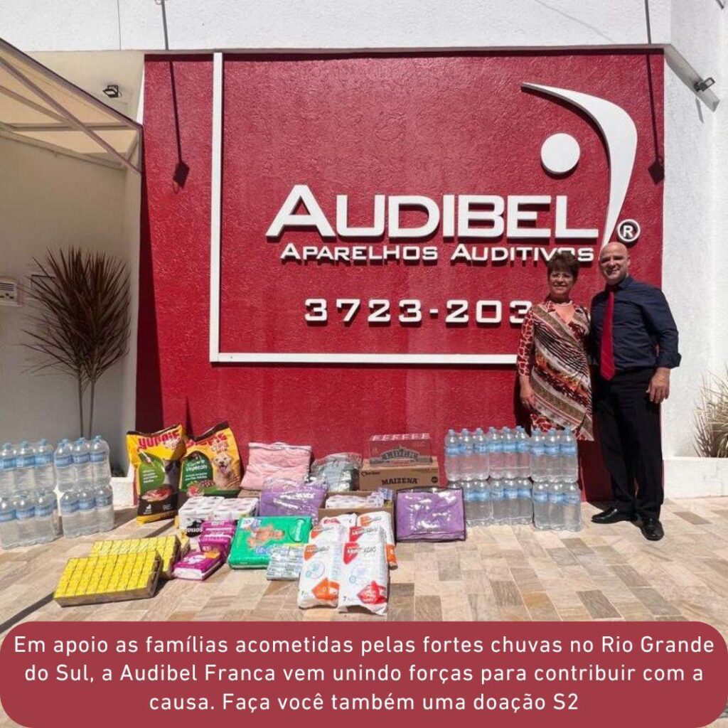 A Audibel Franca, muito bem dirigida pelos irmãos, Dra. Katia Silveira e Anderson Denis de Melo, disponibilizou seu espaço físico como ponto de coleta de doações para as vítimas das enchentes no Rio Grande do Sul. Mais uma bela iniciativa da equipe Audibel. Doações podem ser feitas na Rua José Salomoni, 226, Parabéns à Kátia e ao Anderson.