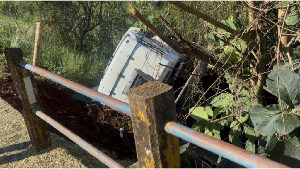 De acordo com as primeiras informações, um caminhão que transportava um silo teria apresentado falha no sistema de freios enquanto subia um trecho da rodovia. Sem controle, o veículo voltou de marcha ré e acabou caindo dentro do rio Salgado.