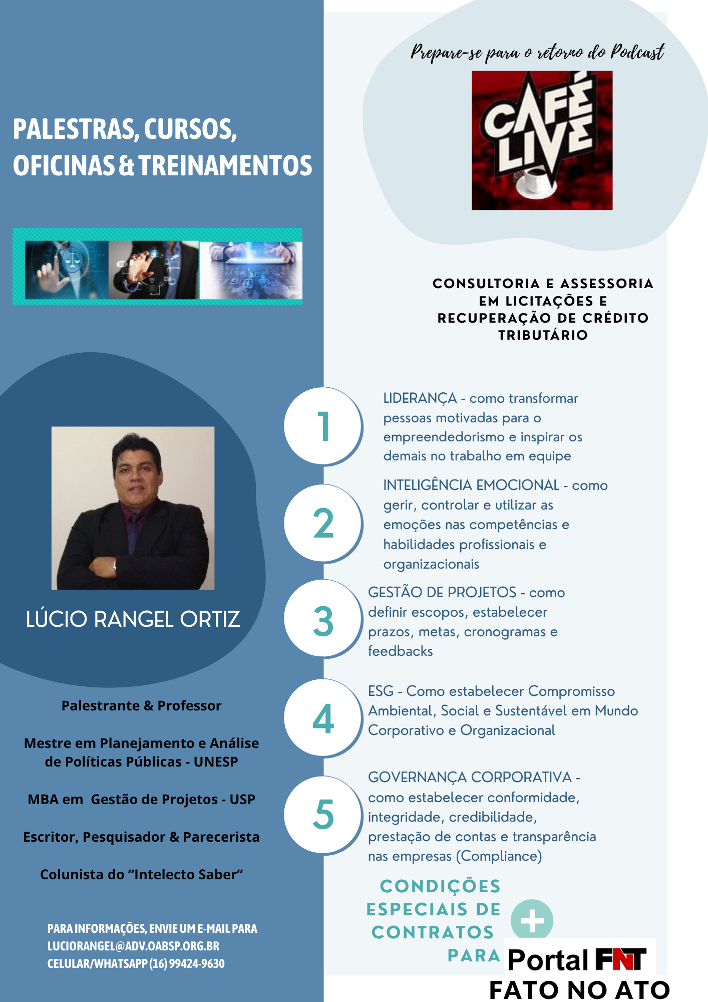 Com o objetivo de fortalecer competências estratégicas nas organizações públicas e privadas, uma nova frente de capacitações está sendo lançada com foco em liderança, inteligência emocional, gestão de projetos, ESG, governança corporativa (compliance), contratos, licitações e recuperação de crédito tributário.