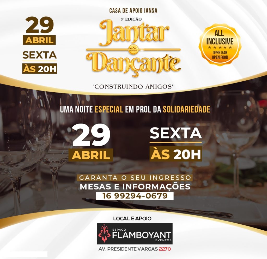 A Casa de Apoio Iansa estará realizando no próximo dia 29 às 20h no espaço Flamboyant, o Jantar Dançante “Construindo Amigos”.