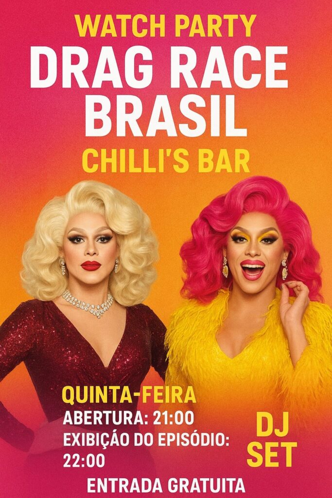 O Chilli’s Bar se prepara para uma noite inesquecível na próxima quinta-feira, 11 de setembro, com a exibição do último episódio de Drag Race Brasil em uma watch party cheia de energia, diversidade e muito brilho!