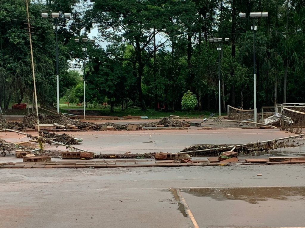 Parte da mureta que faz divisa entre a represa e a pista de caminhada foi levada pelas águas. Pontes e passarelas ficaram destruídas. A água também atingiu cinco quadras de tênis, destruindo alambrados, quiosques e muretas que existiam entre as estruturas esportivas.
