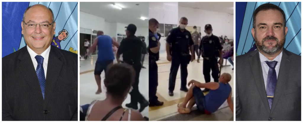 Ao chegar à porta, o paciente é empurrado no chão. No vídeo que circula na internet, um dos guardas fala: “Você pensa que está aonde? Pega seu chinelo e espera a sua vez”. Na sequência, uma testemunha que também aguardava por atendimento, tenta intervir falando para os guardas deixarem de serem covardes.