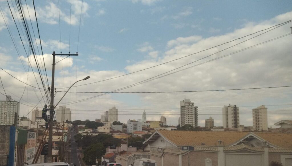 Nesta quinta-feira, equipes de uma empresa de telefonia retirava os fios sem uso na Estação. No Jardim Portinari, os fio eram retirados durante a troca de postes de madeira por postes de concreto. A “faxina” tem ocorrido também em outros bairros.