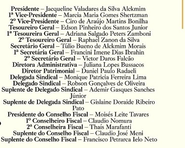 VEJA A COMPOSIÇÃO DA DIRETORIA REELEITA