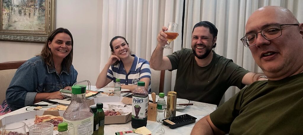 Início » Dois casais especiais que temos o privilégio de estimar tanto: Dr. Rafael Spirlandeli, advogado criminalista de destaque, e sua esposa Juliana; ao lado de Evandro Saturi, consultor empresarial, e sua esposa Nádia, estrategista em marketing digital. Um encontro marcado por boas conversas, risadas sinceras e aquela leveza que só a boa companhia proporciona — momentos assim fortalecem ainda mais laços tão valiosos.