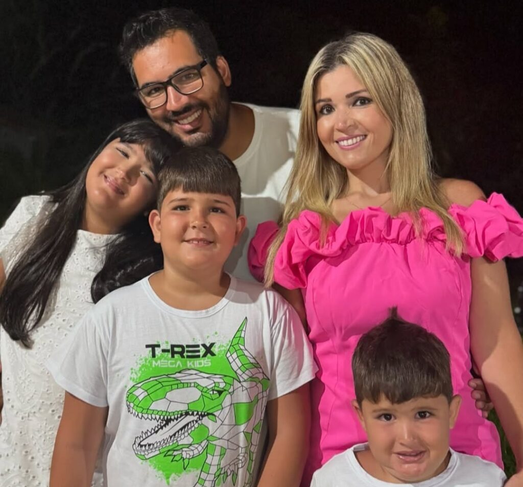 Início » Dois dos maiores nomes da odontologia da nossa cidade, cuja dedicação e excelência transformam vidas todos os dias, Dr. Leônidas e Dra. Maria Fernanda hoje aqui acontecem para este registro especial e aparecem, na foto, ao lado de seus maiores tesouros — Maria Flor, Benício e Bernardo — que iluminam ainda mais seus sorrisos. Um encontro de profissionais brilhantes e famílias inspiradoras.