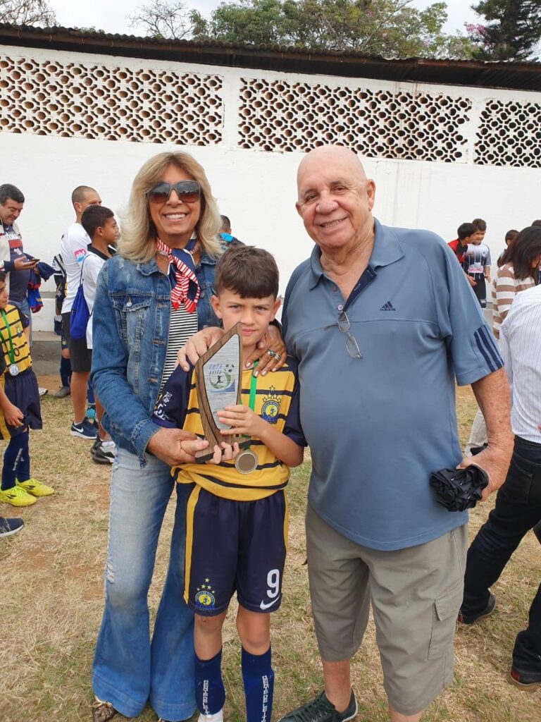 Revirando meu vasto arquivo de fotos, me deparei com esta, que foi tirada no Centro Esportivo Dente de Leite, quando da realização do campeonato de escolinhas. Mostra meu filho, Miguel Verzola, que foi o artilheiro do torneio, ostentando seu troféu, junto dos avós, meu saudoso pai, Paulo Roberto Verzola e Cida Verzola. São momentos marcantes que faço questão de recordar em minha Coluna.