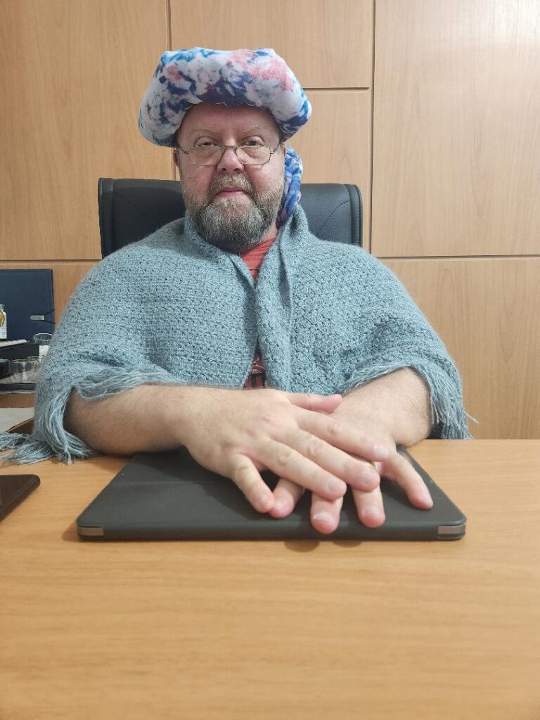 Ele faz sucesso com seu podcast sobre Diabetes. Riad Salloum Filho, aqui fantasiado de sua personagem “Tia Bete”. Muita informação e humor num podcast dos mais interessantes.