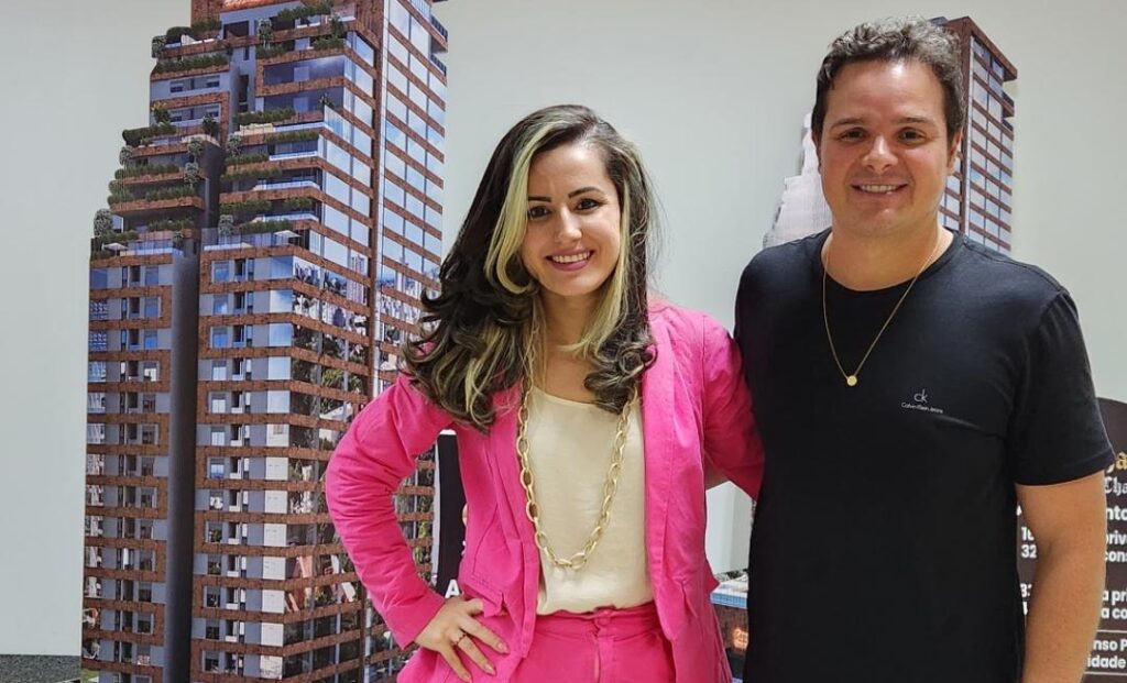 Eles formam dupla de sucesso no ramo da construção civil. João Paulo Alvarenga, Diretor das Construtoras Copenhagen e White House e Sabrina Prado, Coordenadora de Vendas.