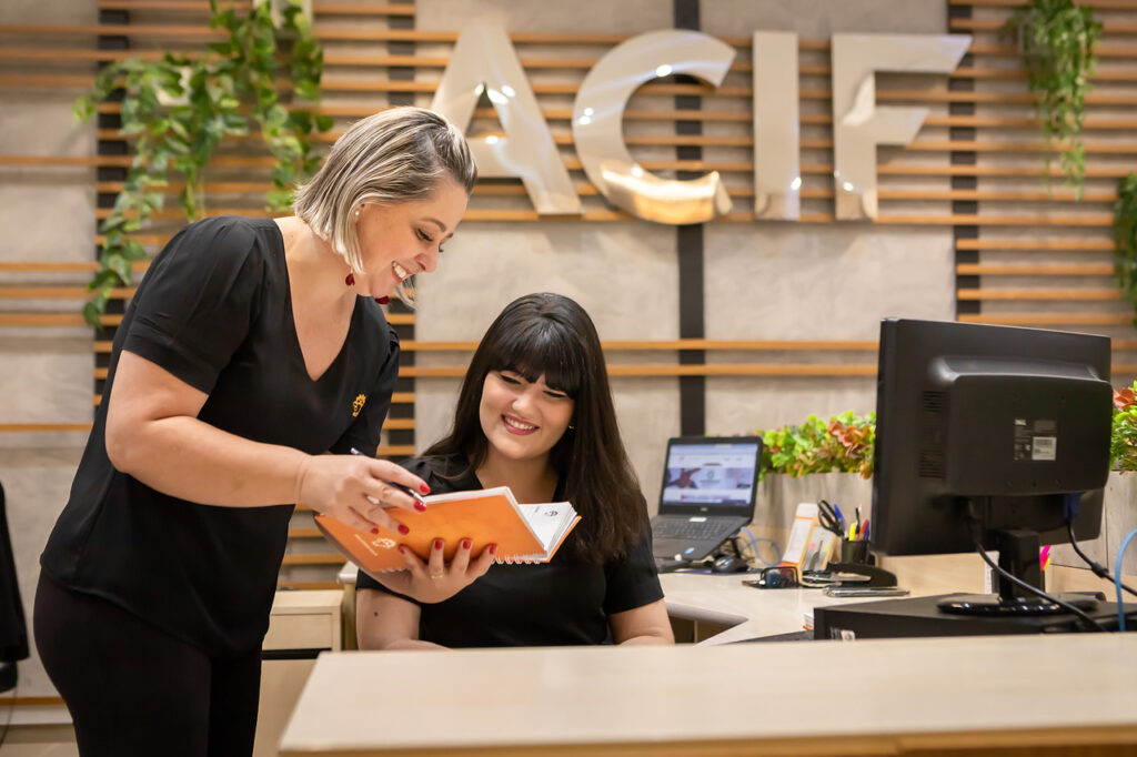 Foto: imagem de arquivo de Danila Sartório e Rafaela Chacon, que integram a equipe do Empregos ACIF (Crédito: Wilker Maia/ACIF)