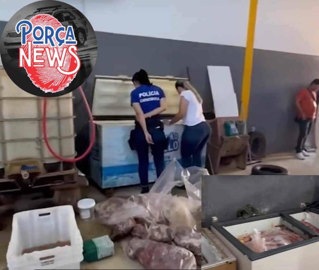 Durante a operação, os agentes encontraram uma série de irregularidades, incluindo armazenamento inadequado de carne, ausência de qualquer tipo de higienização e produtos sem identificação. Em imagens divulgadas pela polícia, é possível ver marcas de sangue no chão e próximos aos freezers onde a carne era mantida sem refrigeração adequada, além da presença de insetos devido ao forte odor no local.