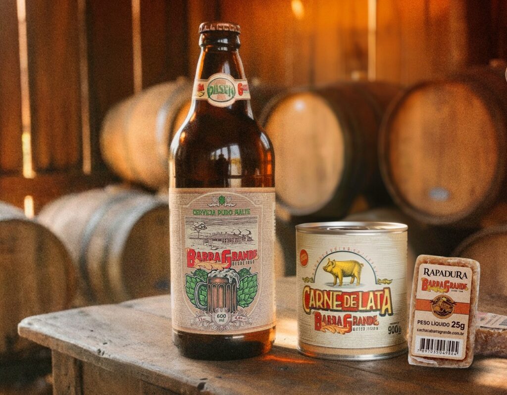 Propriedade apresenta carne de lata e rapadura em miniatura, além da linha de cachaças