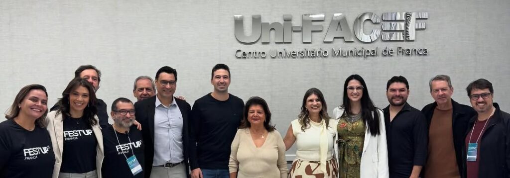 Foi realmente um grande sucesso o Fest’UP – Festival Universitário de Propaganda, promovido nacionalmente pela APP Brasil (Associação dos Profissionais de Propaganda), que aconteceu no último dia 17 no campus do Centro Universitário Uni Facef. O evento contou com uma programação intensa com palestras, workshops, painéis e momentos de networking voltados ao universo da publicidade, marketing, inovação, mídia digital e tendências do setor criativo. Feliz e realizada com o sucesso do evento, está a queridíssima e muito capacitada Profa. Fúlvia Nassif, diretora de Marketing e coordenadora do curso de Publicidade e Propaganda do Uni-FACEF, a qual afirma que a proposta do Fest’UP “foi de proporcionar uma imersão criativa e formativa, fortalecendo a ponte entre academia e mercado, além de incentivar jovens talentos a ocuparem com protagonismo os espaços da comunicação profissional”. A foto destaca a equipe diretora e professores do Uni Facef recebendo convidados especiais que estiveram prestigiando o evento.