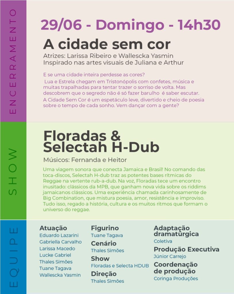 📍 Local: Ponto de Cultura Espaço Nulo – Franca (SP) 📅 Data: 28 e 29 de junho 💲 Entrada: Gratuita ♿ Acessibilidade: Intérprete de Libras, sala sensorial, óculos escuros e abafadores de ruído