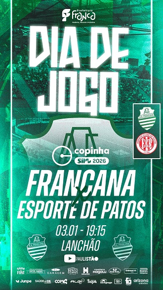 A Associação Atlética Francana inicia, neste sábado (3), sua caminhada na Copa São Paulo de Futebol Júnior diante da própria torcida, no Estádio José Lancha Filho, o Lanchão. A Veterana estreia às 19h15 contra o EC Patos, da Paraíba, em duelo que abre a disputa do Grupo 13 da competição.