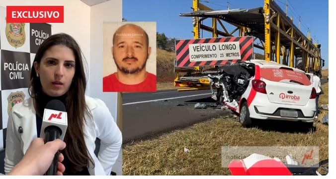 Em dado momento, por motivos a serem esclarecidos, o motorista perdeu o controle do veículo, invadiu o acostamento e bateu num caminhão cegonha que estava estacionado.