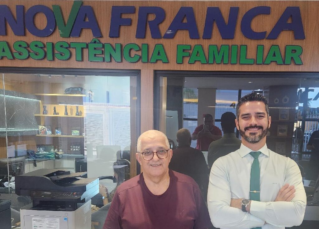 Estive visitando no começo da semana as novas e reformuladas instalações da Funerária Nova Franca, na Rua Monsenhor Rosa, 2272, no Centro da cidade. O prédio, todo repaginado, ganhou forma muito linda, com uma arquitetura moderna e funcional para bem receber os clientes da Nova Franca. Minha equipe esteve no local, onde gravamos reportagem bem especial para o programa Família Verzola Recebe. A foto destaca os diretores da Nova Franca, Rafael e Dr. José Roberto Silveira, que esperam por toda comunidade para conhecer os benefícios que a Nova Franca oferece aos clientes.