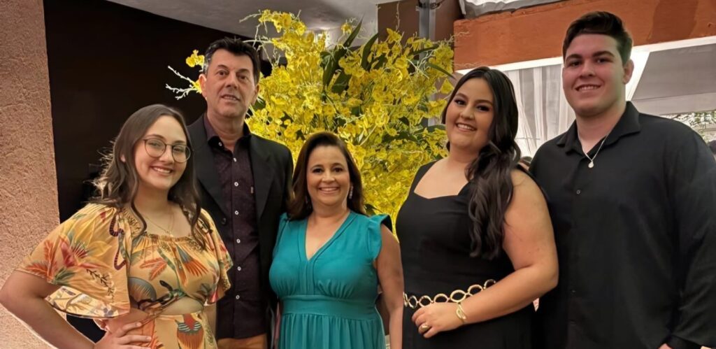 Início » Gratificante poder destacar em minha página dominical esta família querida, por quem temos amizade, carinho e admiração. Malu Simões, coordenadora do Colégio Alto Padrão, e professora atuante da rede estadual de ensino, aparece na foto ao lado do esposo, Fabiano, das filhas, Helena e Eleonora e do genro, Vitor, em um registro que revela carinho, união e inspiração. Mulher dedicada, profissional admirada e exemplo de liderança, Malu segue deixando sua marca com competência, sensibilidade e compromisso com a educação de excelência.