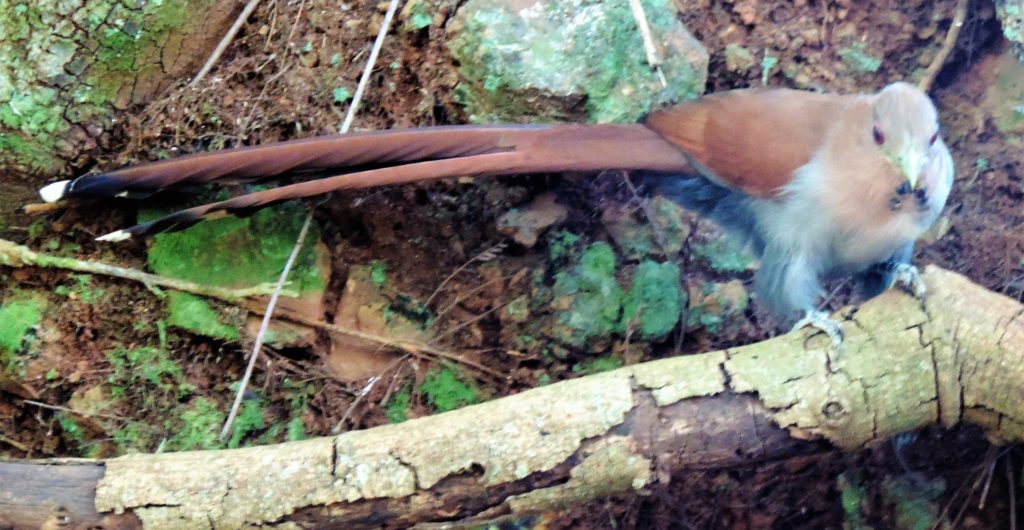 Percorre rápida e silenciosamente, em voos de curta distância, os galhos da floresta à procura de insetos, pequenos vertebrados e frutas (fonte : Wikipédia).