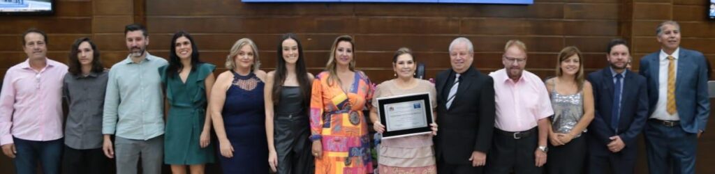 – Mesa de honra formada por autoridades e amigos da homenageada.
