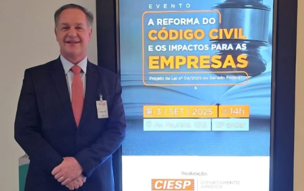 Início » O renomado advogado Dr. Esdras Lovo, referência em sua área de atuação, participou recentemente de um importante congresso jurídico na Capital paulista, em evento promovido pela Ciesp, que debateu “A Reforma do Código Civil e os impactos diretos para as empresas”.  Dr. Esdras foi um dos mediadores do evento, e com sua experiência e reconhecida trajetória, contribuiu de forma significativa para os debates, enriquecendo as discussões e fortalecendo ainda mais seu destaque no meio jurídico.