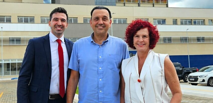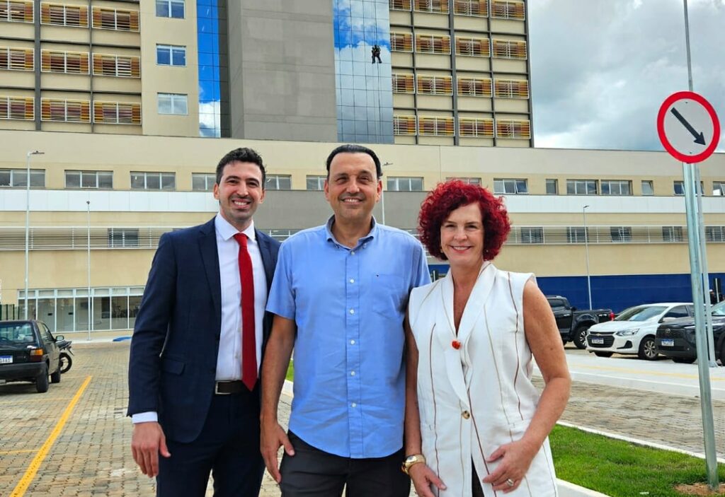 Início » O vice-governador do Estado de São Paulo, Felício Ramuth, visitou na última segunda-feira, as obras do Hospital Público Estadual de Franca, localizado na Avenida São Vicente, e destacou o papel do vereador Daniel Bassi na articulação política que resultou na implantação do novo equipamento de saúde, considerado como o maior investimento do Governo do Estado em saúde na região. A coordenadora regional do PSD, Flávia Lancha, partido ao qual pertencem Bassi e Ramuth, também destacou a dimensão do investimento. “Estamos todos ansiosos, é um investimento muito grande, que Franca merece, por parte do governo do Estado”, afirmou.
