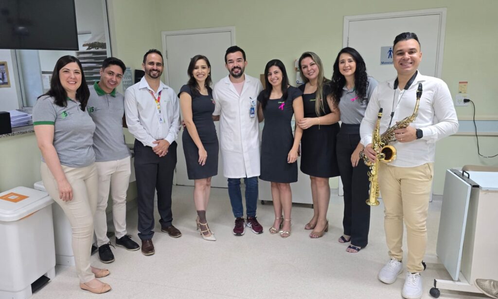 Durante a manhã, os pacientes que estavam recebendo medicação desfrutaram de um café da manhã com apresentação de um saxofonista, criando um ambiente de alegria e esperança.