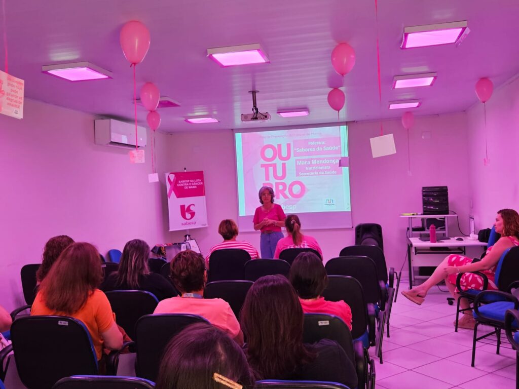 Como parte da campanha Outubro Rosa, a Sabesp de Franca promoveu uma atividade para conscientização do tema. Com a palestra “Sabores da Saúde”, conduzida pela nutricionista Mara Mendonça, da Secretaria Municipal de Saúde, foi levado aos participantes uma visão prática sobre a importância de uma alimentação saudável na prevenção do câncer, enfatizando que a mudança dos hábitos alimentares é um processo gradual, mas essencial.