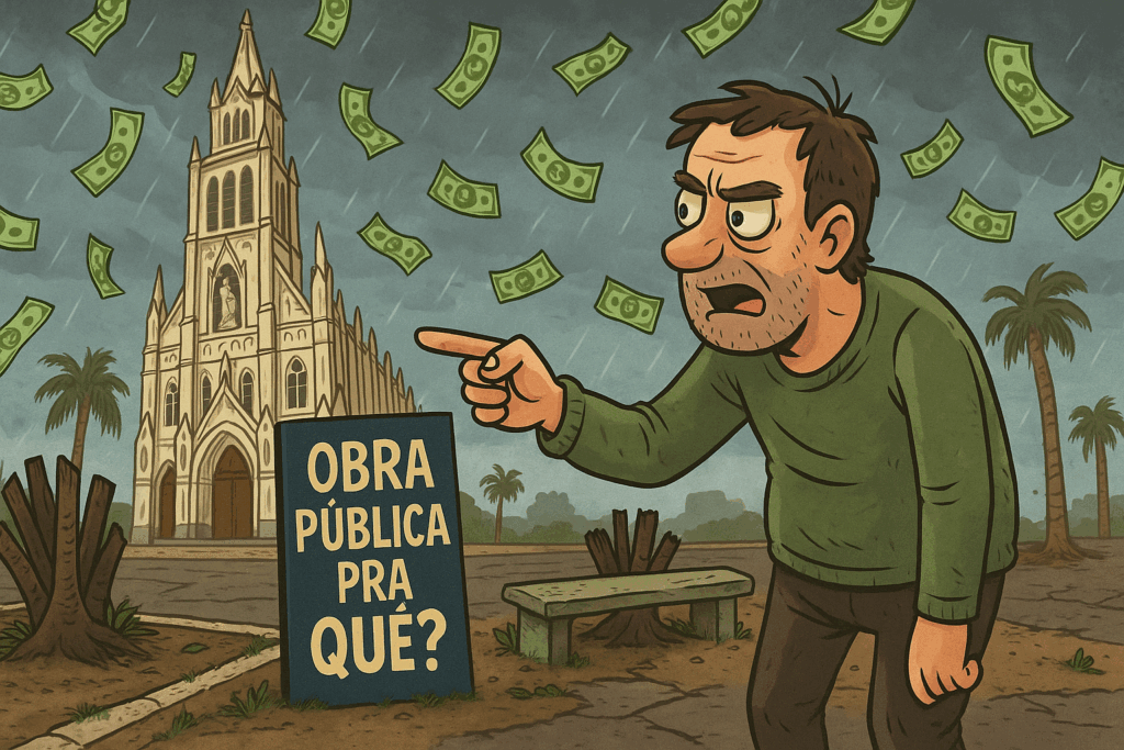 Munícipes questionam qualidade da obra em fase final antecipada e apontam descaso com o espaço público mais simbólico da cidade.