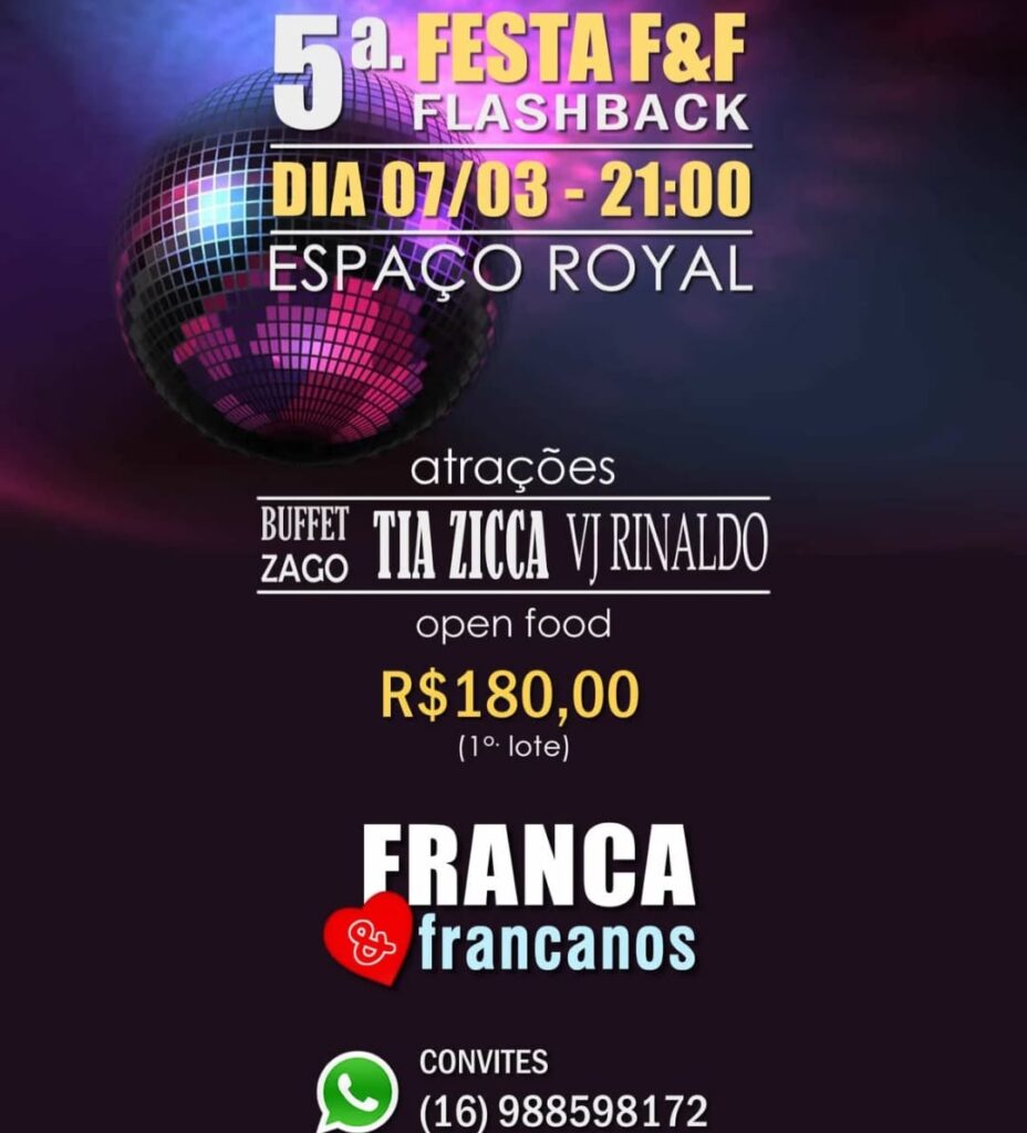 A animação musical fica por conta da banda Tia Zica, garantindo um repertório envolvente, dançante e cheio de nostalgia para ninguém ficar parado. É o encontro perfeito entre boa música, gente bonita e um ambiente pensado para celebrar, curtir e relembrar grandes sucessos.