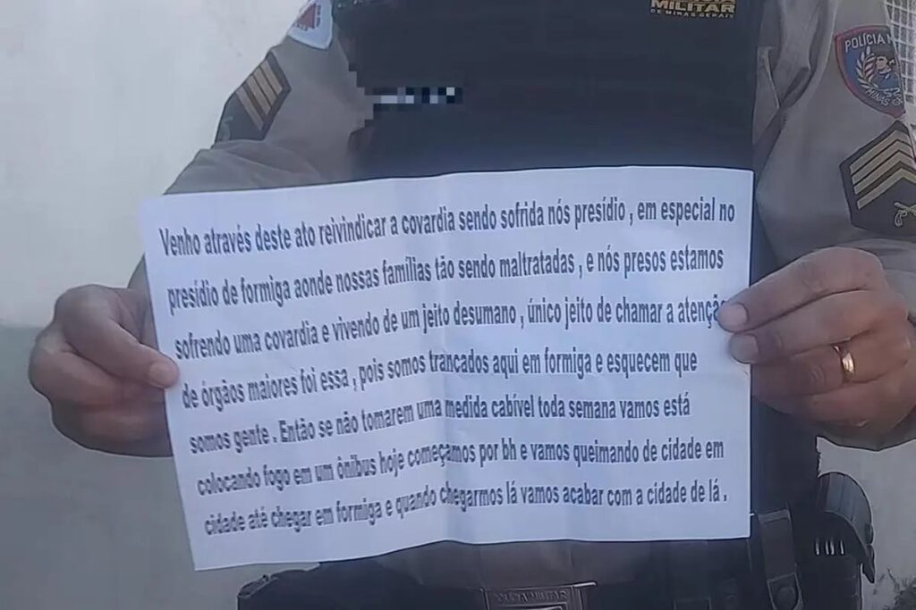 “Nossas familias tão (sic) sendo maltratadas, e nós presos estamos sofrendo uma covardia e vivendo de um jeito desumano, único jeito de chamar a atençar de orgãos maiores foi essa, pois somos trancados aqui em Formiga e esquecem que somos gente”, dizia o bilhete.