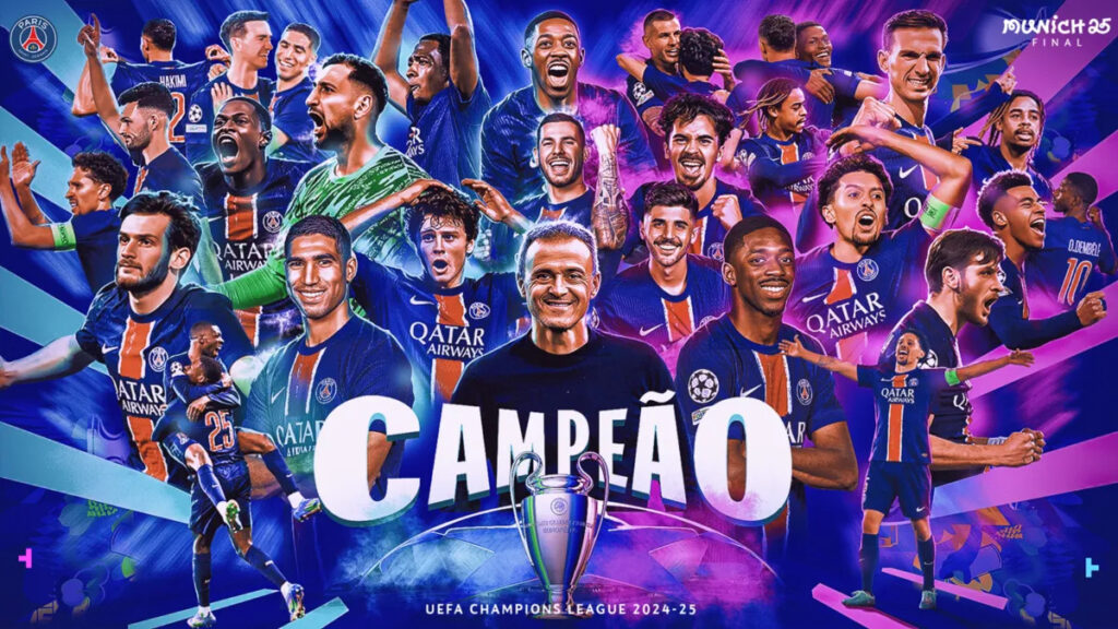 O Paris Saint-Germain é campeão da Champions League! O time parisiense massacrou a Inter de Milão ao vencer por 5 a 0 a grande final realizada neste sábado (31), na Allianz Arena, em Munique, na Alemanha.