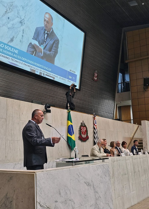 O ex-deputado estadual Roberto Engler foi homenageado com a maior honraria concedida pela Assembleia Legislativa de São Paulo na manhã desta segunda-feira, 29.