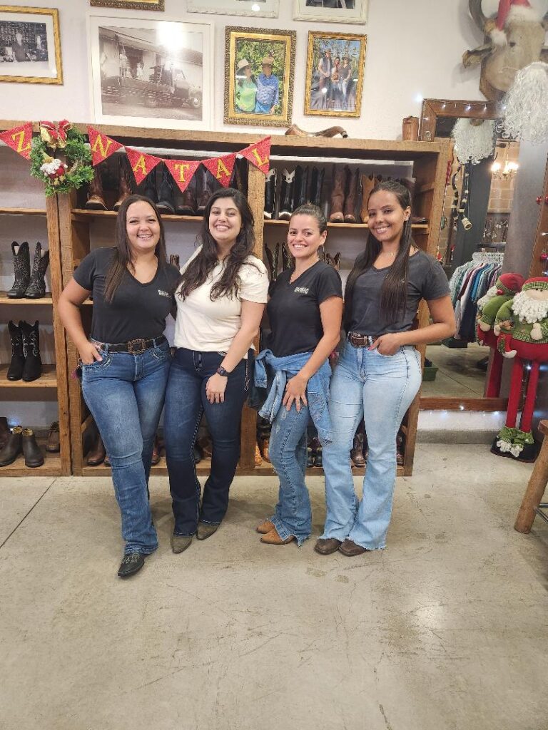 Estive visitando na última segunda feira as instalações da tradicional loja Salomão Country, na AV. Presidente Vargas. Uma loja moderna, ampla, onde você encontra roupas para toda a família, botas, chapéus, cintos e uma infinidade de produtos. Sem dúvida, uma ótima opção para presentear neste Natal. Na foto a diretora da loja, Larissa Salomão junto de sua eficiente e simpática equipe composta por Amanda, Simone e Ysadora.