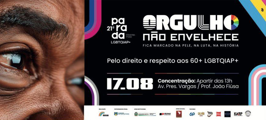 O tema deste ano, “Orgulho não envelhece, fica marcado na pele, na luta, na história: pelo direito e respeito aos 60+ LGBTQIAPN+”, presta homenagem às pessoas LGBTQIAPN+ com mais de 60 anos que abriram caminhos e inspiram novas gerações.