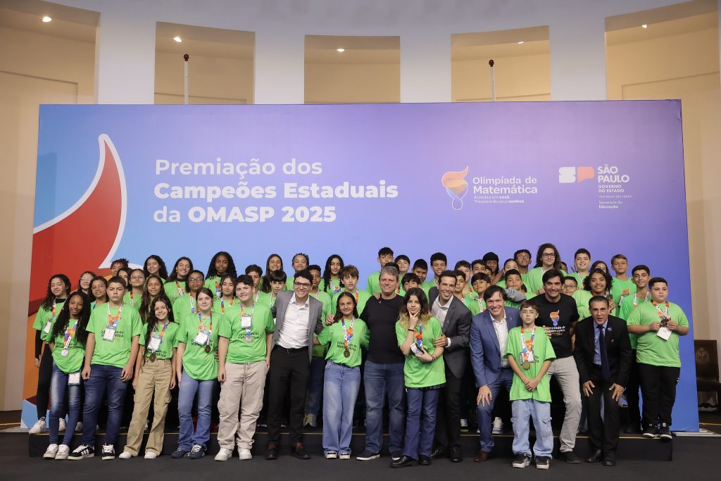A matemática tem ganhado novos protagonistas nas escolas estaduais de São Paulo. Nesta quarta-feira, 15 de outubro, o Governo de São Paulo organizou a cerimônia de premiação dos 225 estudantes medalhistas de ouro da Olimpíada de Matemática das Escolas Estaduais (Omasp). O evento foi realizado no Palácio dos Bandeirantes, com as presenças do governador Tarcísio de Freitas e do secretário da Educação do Estado, Renato Feder.