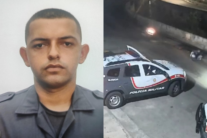Nas imagens de câmeras de segurança, é possível ver o momento em que quatro motocicletas passam em alta velocidade pela via. O policial e um parceiro fazem sinal de parada, mas são ignorados pelos condutores dos veículos.