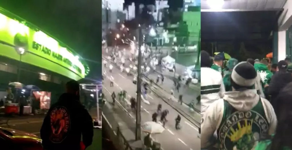 A confusão entre membros das organizadas de Coritiba e Palmeiras aconteceu, segundo a polícia, porque dois dos seis ônibus dos palmeirenses erraram o caminho para o estádio e se depararam com uma uniformizada do time paranaense. Apesar do confronto acontecer fora do Couto Pereira, o incidente acabou paralisando o jogo por causa do gás de pimenta usado pela polícia militar, que acabou se espalhando entre os torcedores dentro do estádio – o árbitro Leandro Pedro Vuaden precisou interromper a partida por cinco minutos.