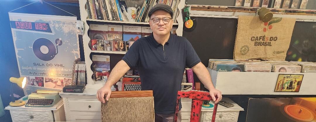 Início » Uma verdadeira joia para apaixonados por música! Na Sala do Vinil você encontra discos de vinil dos mais diversos artistas e gêneros. Por lá você encontra desde edições clássicas até raridades disputadas, tudo selecionado com carinho para quem valoriza o som autêntico e a magia do analógico. Cada vinil conta uma história — venha descobrir a sua. O proprietário, Emerson Domiciano espera por todos. Uma ótima opção para presentear nesta Natal.  Passe por lá e confira: (R. Carlos Dourado, 3971, Vila Exposição).