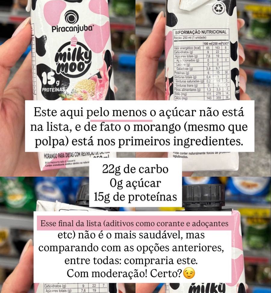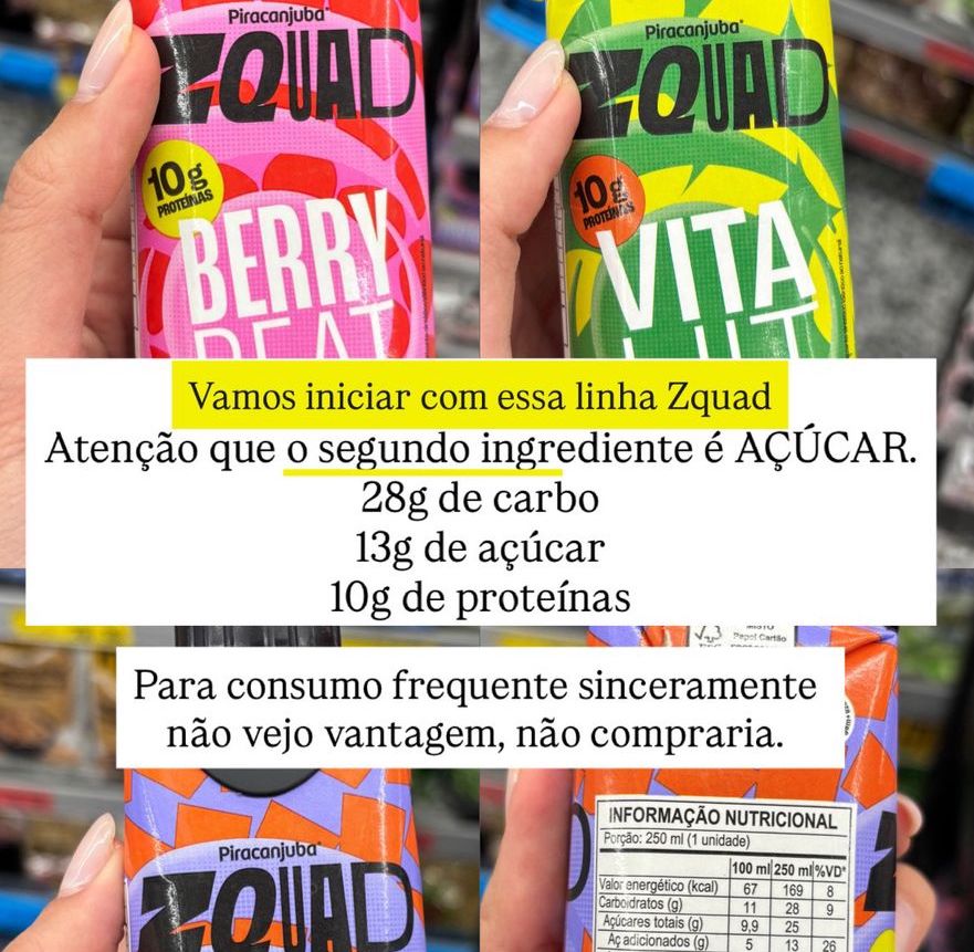 Na avaliação desta semana, é preciso ter atenção à linha Zquad, pois o açúcar aparece como segundo ingrediente, exigindo moderação no consumo. Entre os produtos testados, a Zquad foi a que mais merece cuidado. Já a Mimosa Milky Moo Zero Açúcar se mostra uma opção mais equilibrada para quem busca proteína sem adicionar açúcares. Vale lembrar que, embora práticas e saborosas, as bebidas proteicas são ultraprocessadas e contêm aditivos, sendo importante consumi-las com moderação e dentro de uma alimentação equilibrada.